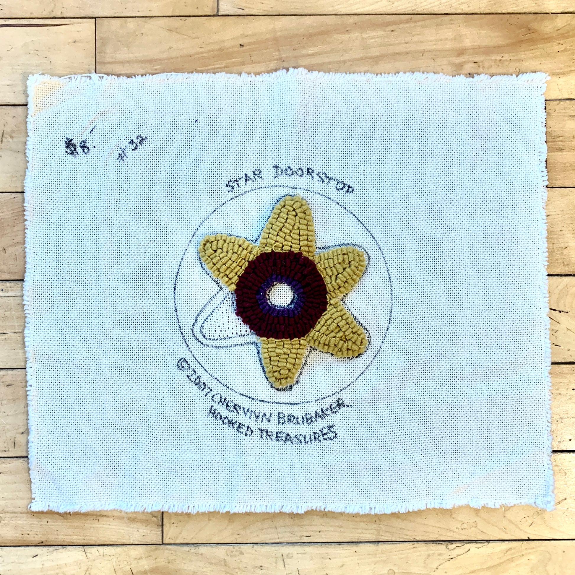 "Star Doorstop," a circular simple pattern drawn on rug warp. Ready to finish or copy to a backing of your choice, and grace a new home!
