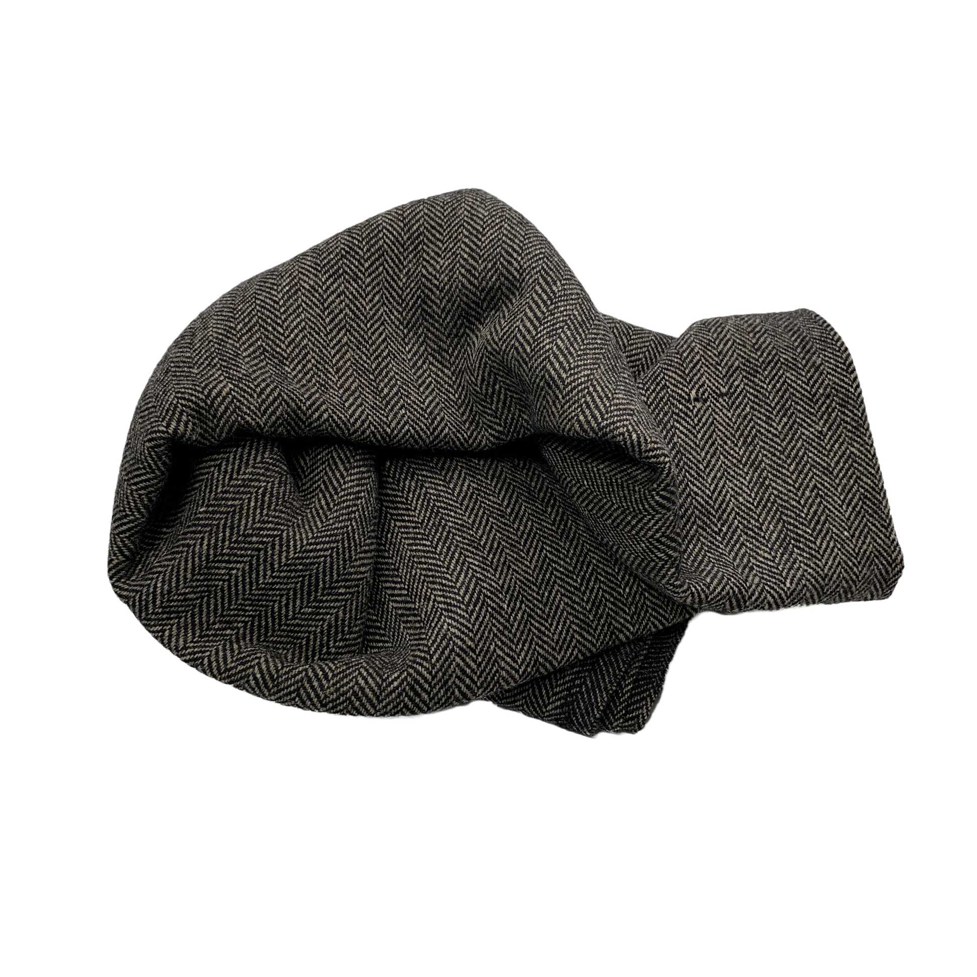 A gorgeous dark grey herringbone tweed, 100% wool.