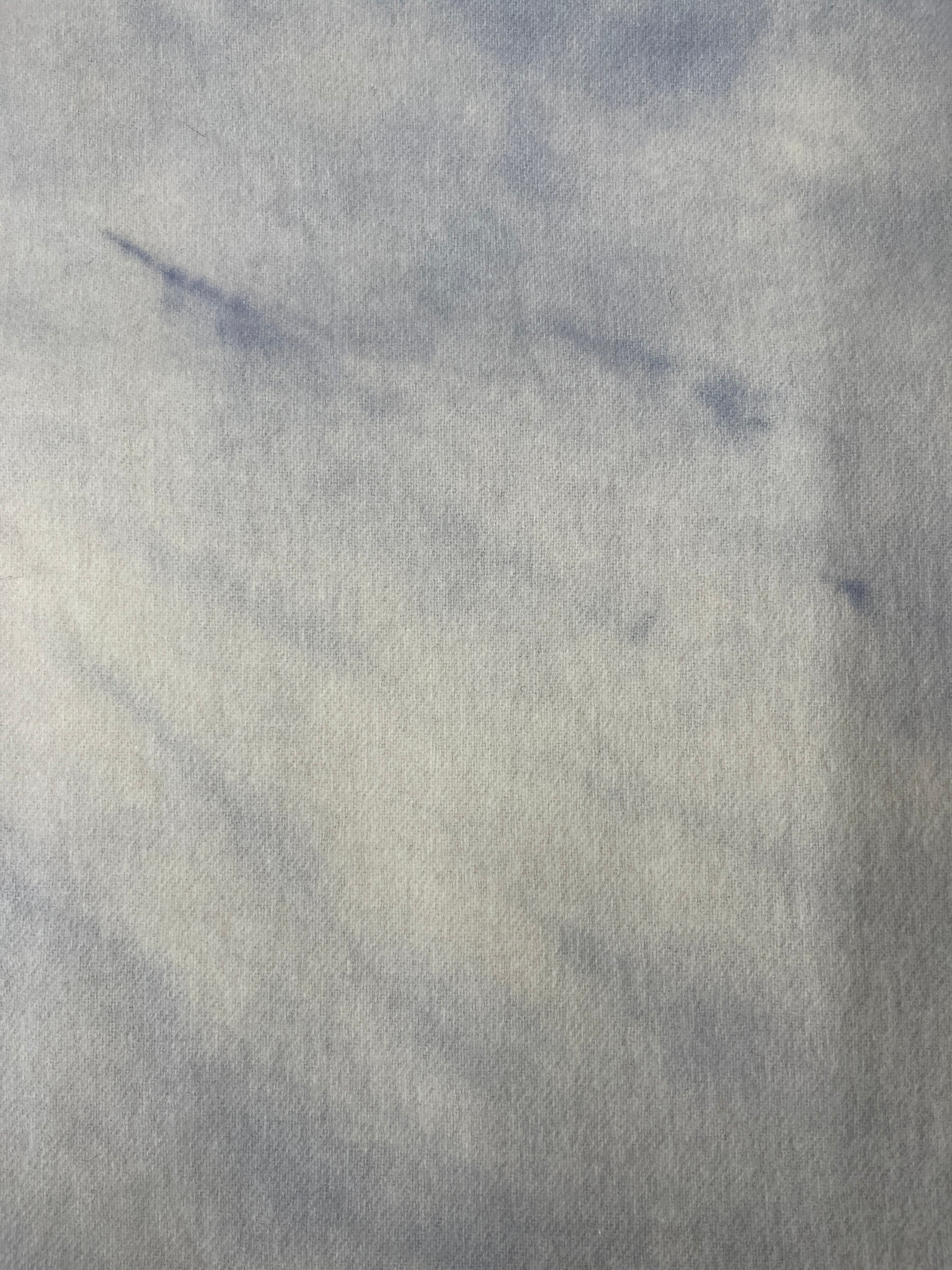 One of a kind, 100% hand dyed wool fabric; spot dyed with blue splotches. Available in 1/4 yard pieces.