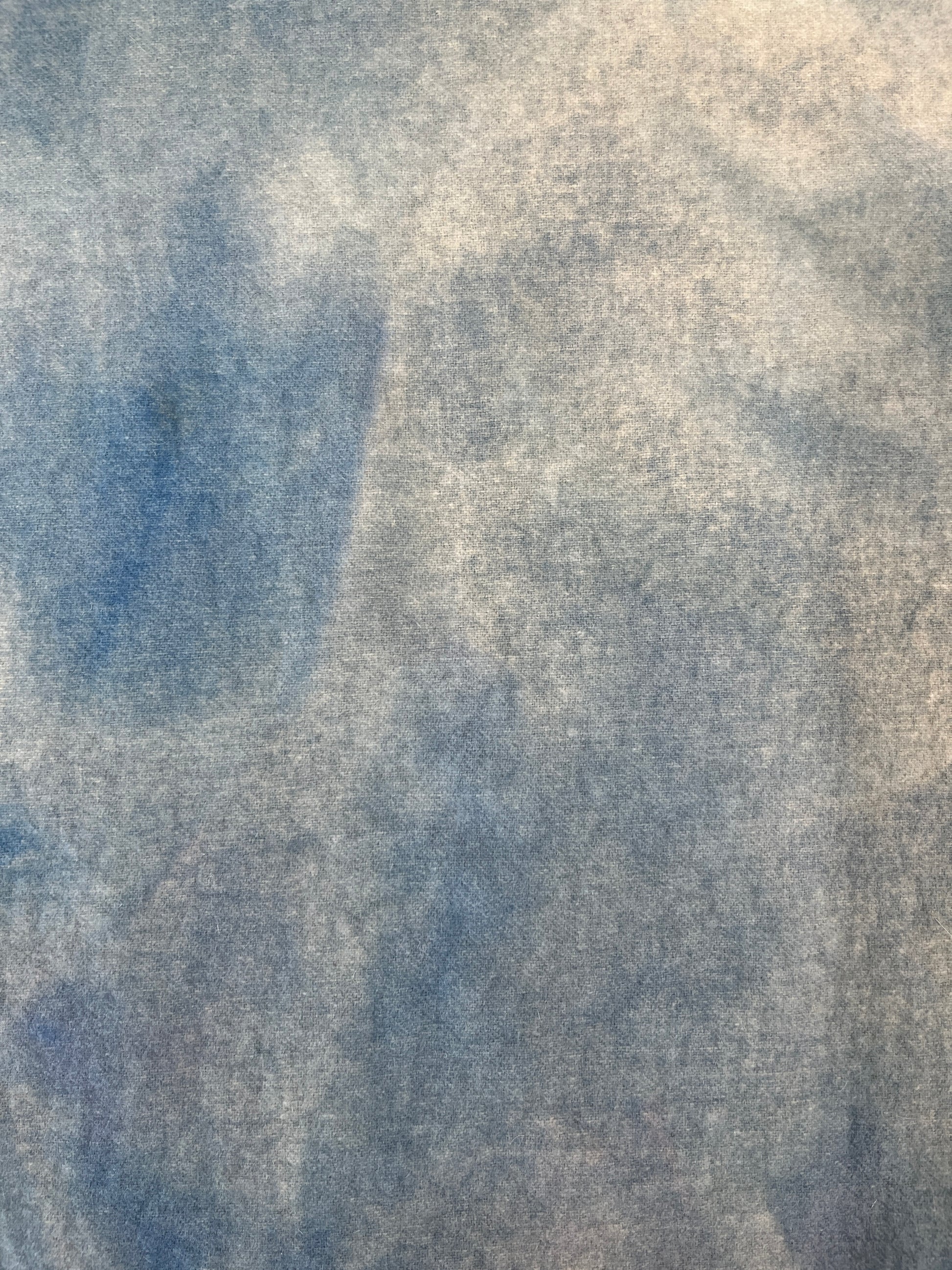 One of a kind, 100% hand dyed wool fabric; spot dyed grey-blue over natural.