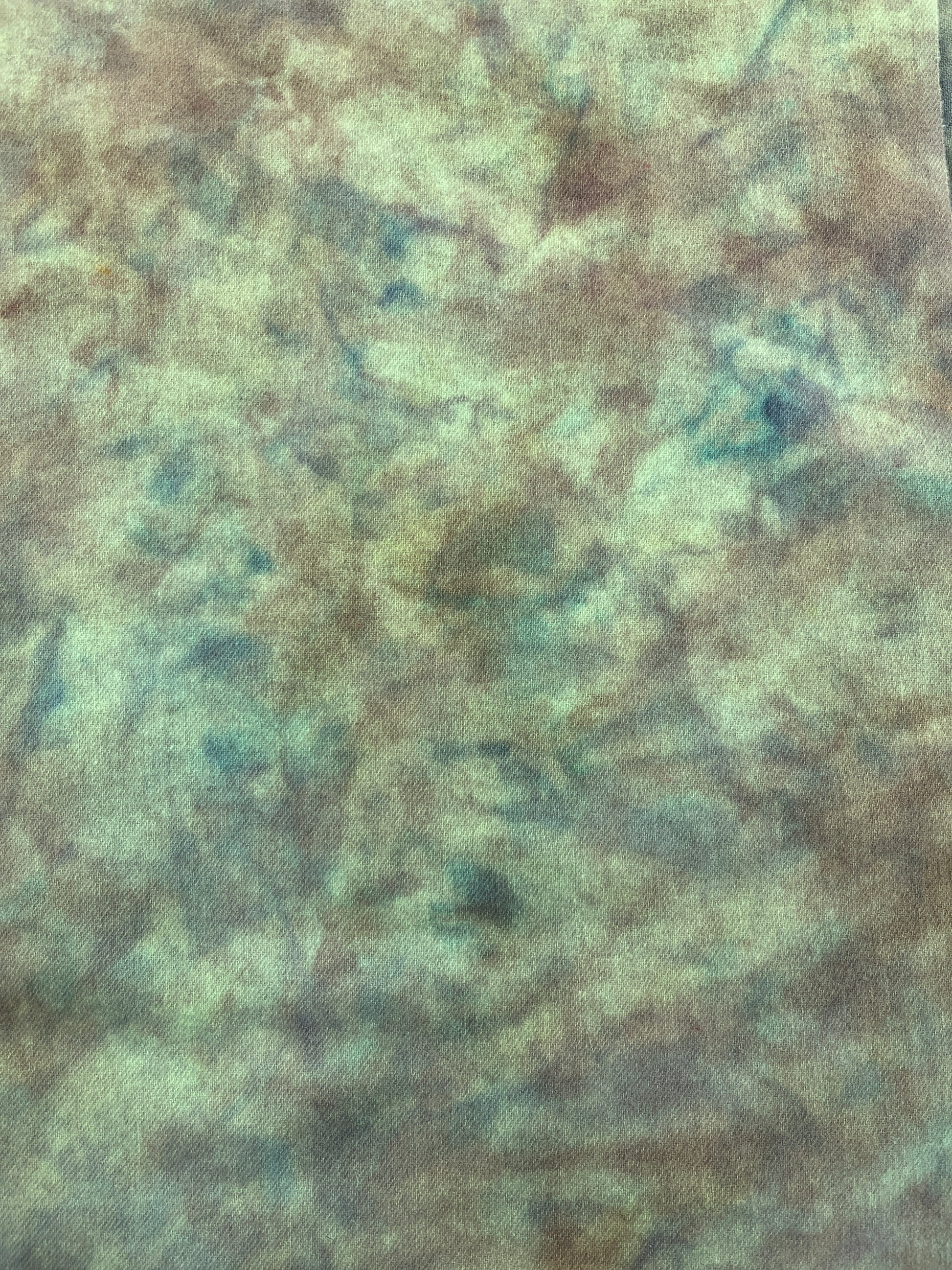 One of a kind, 100% hand dyed wool fabric; colors/patterns will vary slightly from those shown. Available in 1/4 yard pieces.