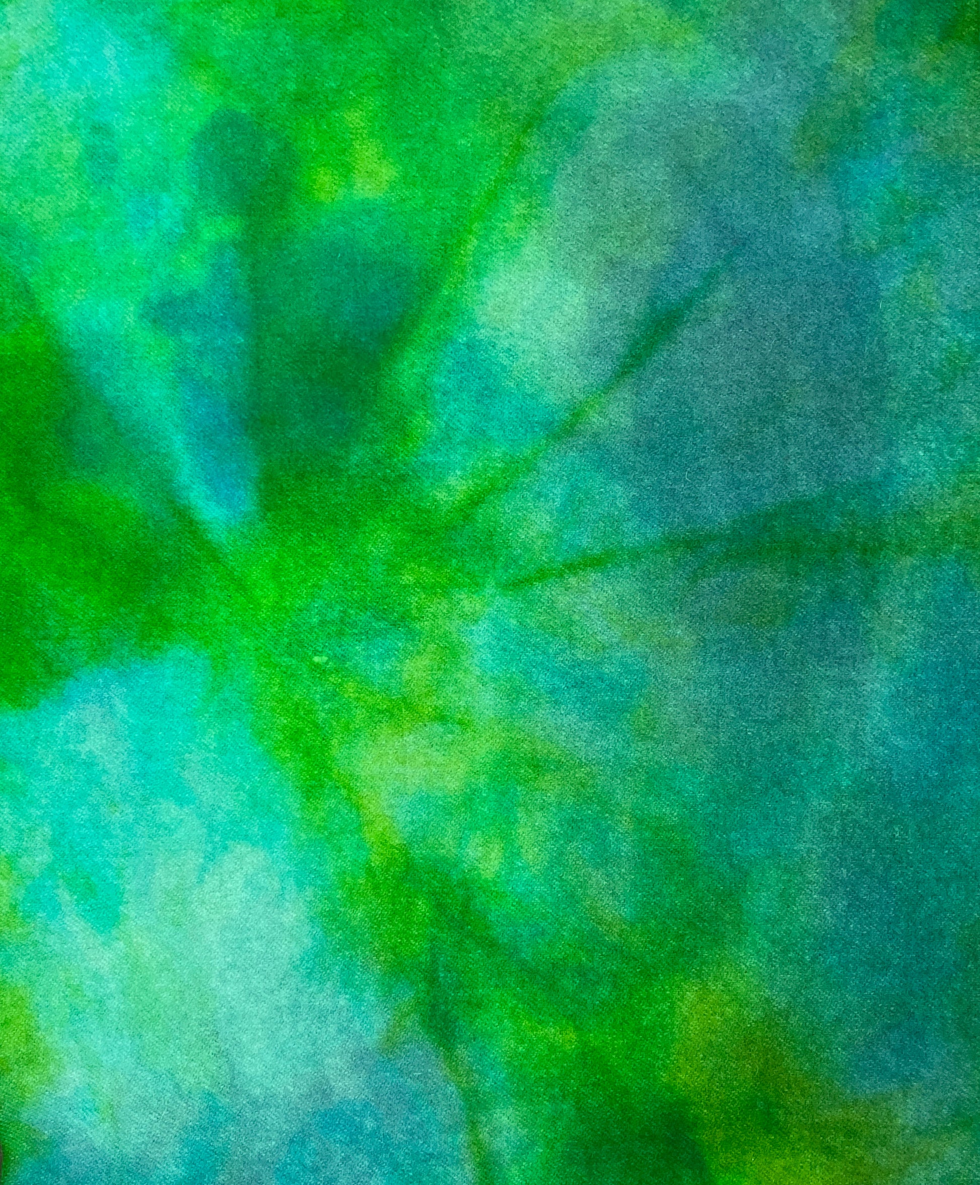 One of a kind, 100% hand dyed wool fabric. Splotches of green mixed in with blue waves. Available in 1/4 yard pieces.