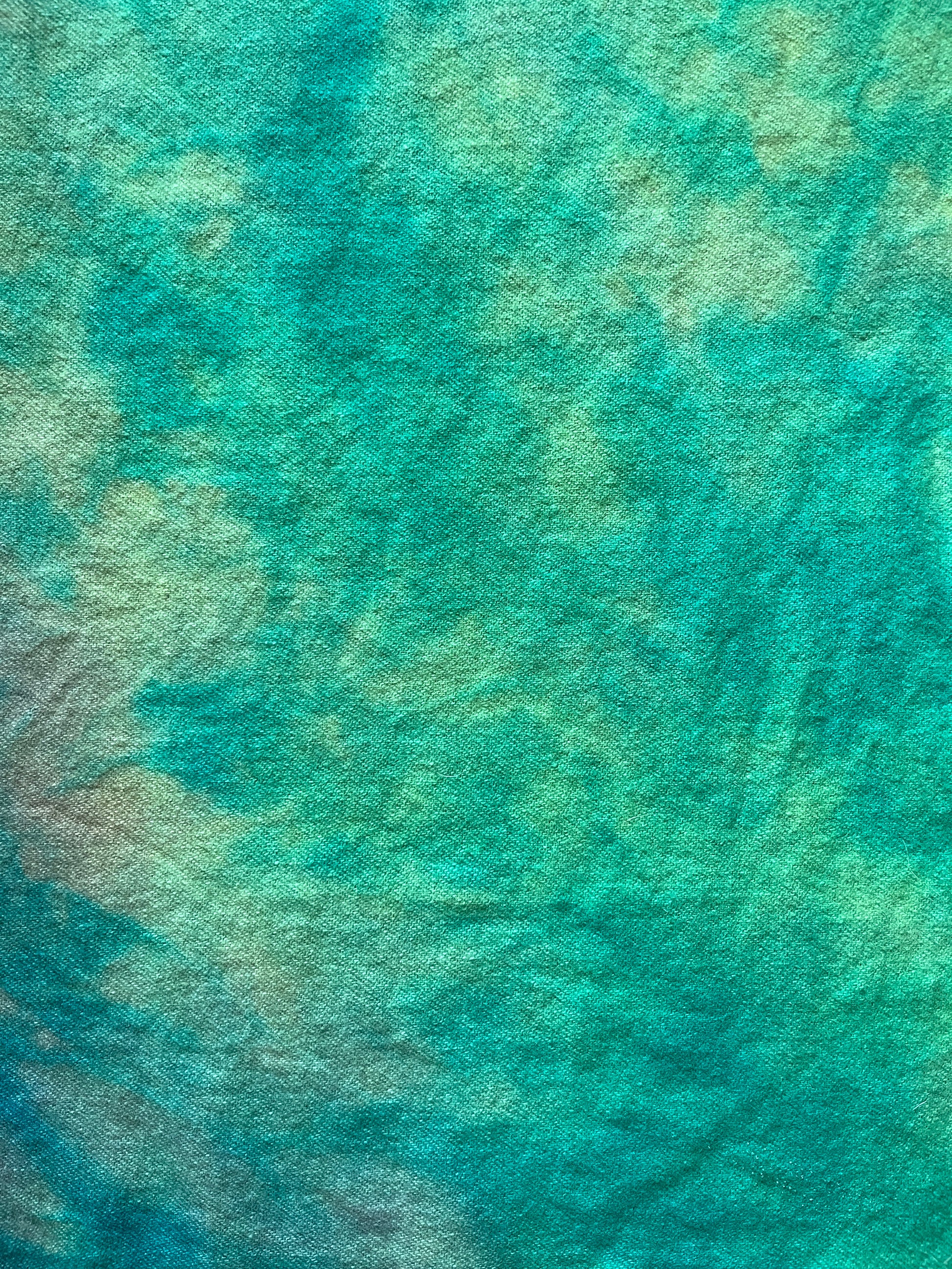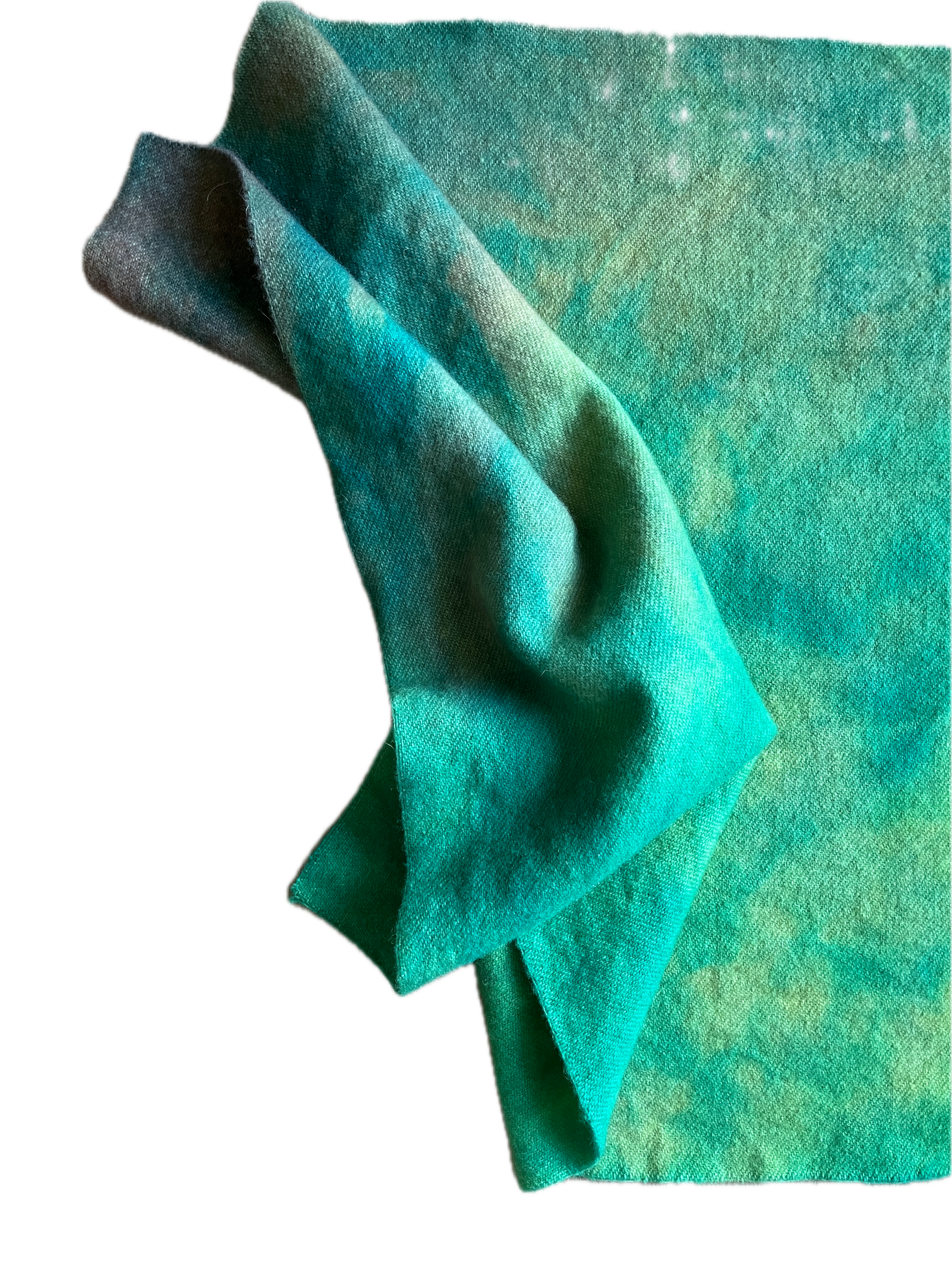 One of a kind, 100% hand dyed wool fabric; colors/patterns will vary slightly from those shown. Available in 1/4 yard pieces.