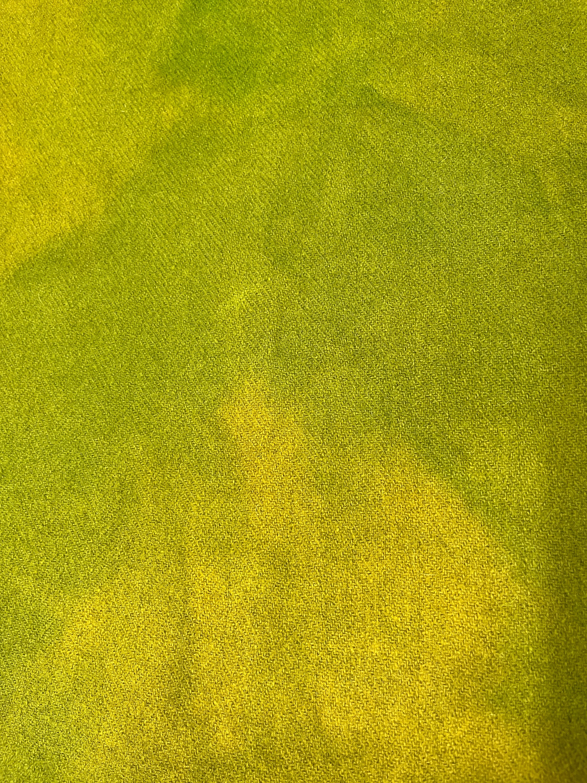 One of a kind, 100% hand dyed wool fabric; light shades of spring green. Available in 1/4 yard pieces.
