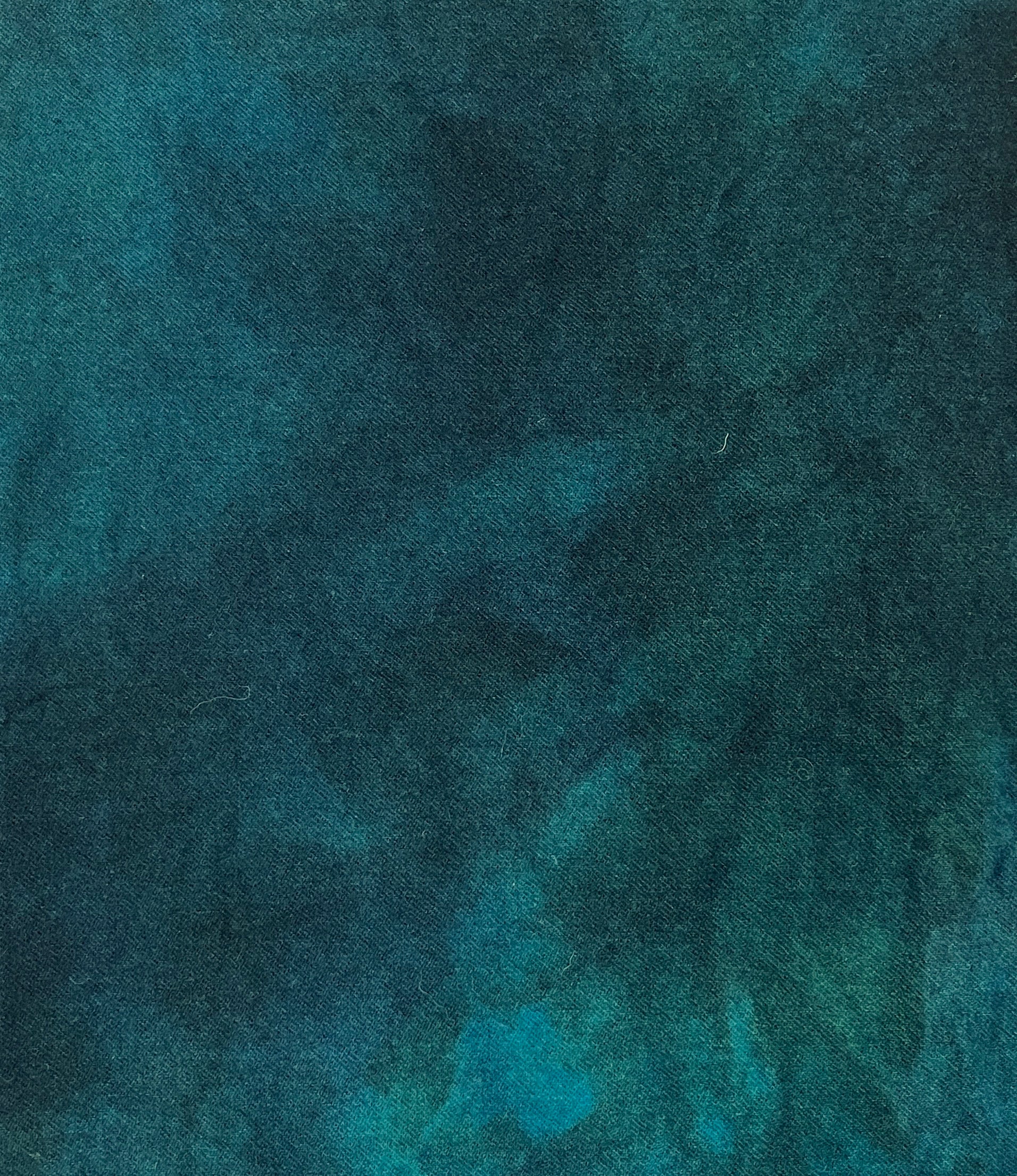 One of a kind, 100% hand dyed wool fabric; colors/patterns will vary slightly from those shown. Available in 1/2 yard pieces.